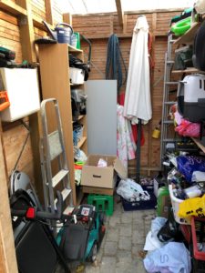 Jeg kan dog sagtens starte med at bakke traileren til, og få den defekte grill, de vamle skimmelbefængte liggeunderlag, de 4 overflødige klapstole, det gamle køkkenbord, maling-sjatterne, de 1.000 flasker og den gamle parasol kørt væk. Helt væk.